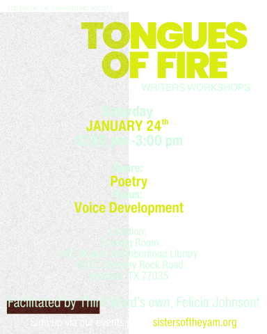 - Tongues of Fire Workshops – writing workshops focused on voice, craft, and reclamation